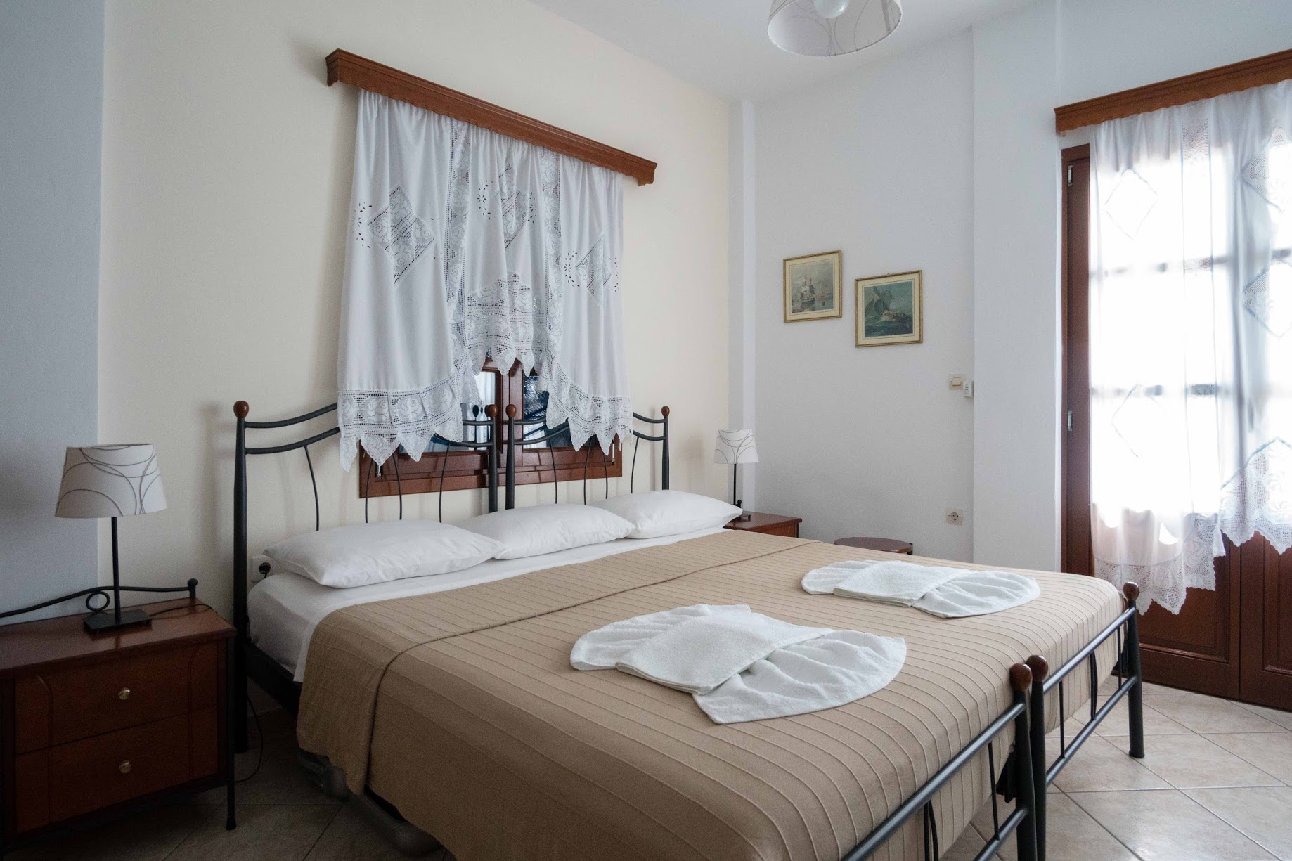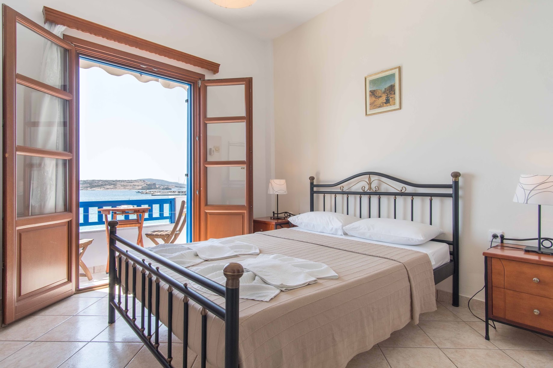 Τα δωμάτια είναι κλιματιζόμενα και εξοπλισμένα με τηλεόραση, θυρίδα ασφαλείας και ψυγείο. Διαθέτουν επίσης ιδιωτικό μπάνιο με ντους. Κάποια έχουν θέα στο Αιγαίο Πέλαγος ή στο χωριό.